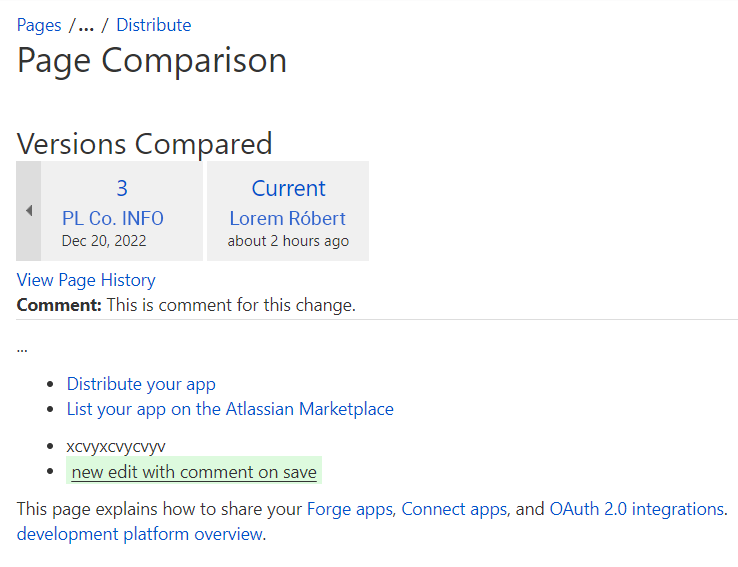 This link intelligently determines the last page version the current user has seen and <mark style="color:green;">compares it with the current version</mark> of the page in Confluence's Page Comparison view.