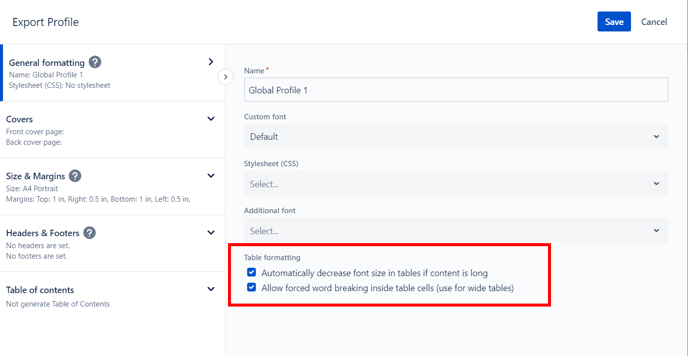 If you are exporting content with a big table that does not fit on the page, you may have some influence on how tables are generated.