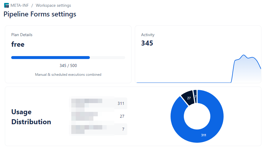 In the workspace admin menu - **Forge apps** section there is a new section, called **Pipeline Forms settings**. Navigate here to overview statistics about usage in your workspace.